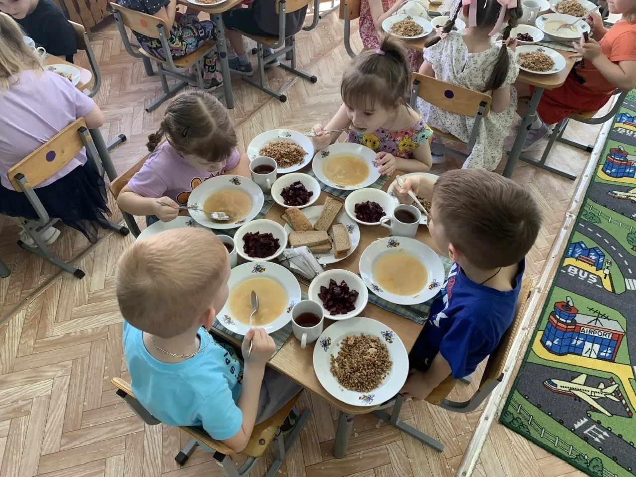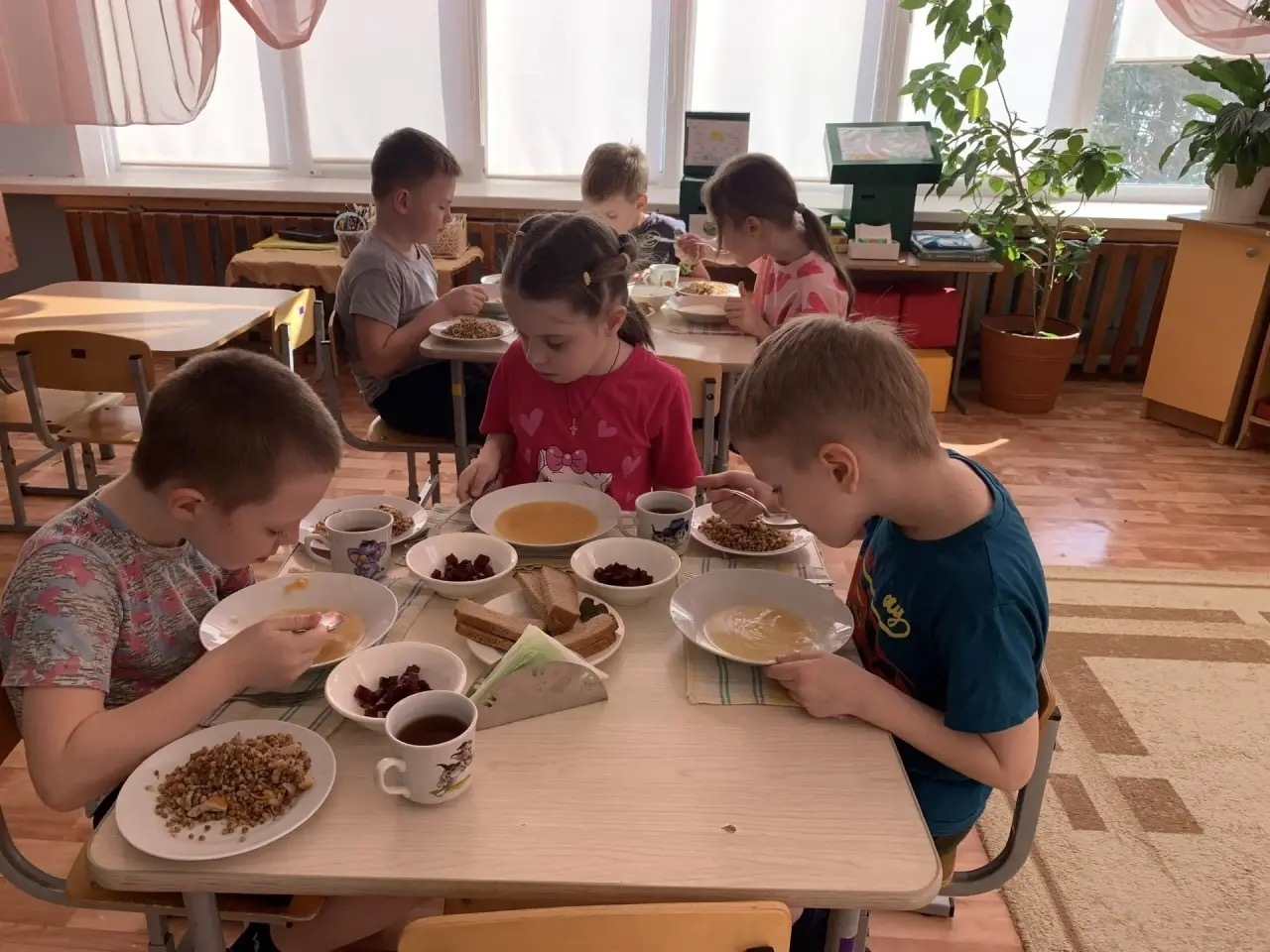 Целый коллектив поваров и кухонных работников в помещении пищеблока с его холодными и горячим цехами, моечными, разделочными и другими помещениями трудится целый день, чтобы накормить детей вкусной и полезной едой.